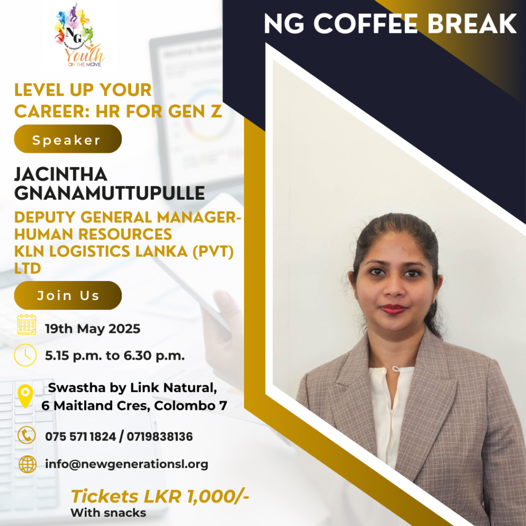 Witness Jacintha Gnanamuttupulle, the Deputy General Manager- HR at KLN Logistics Lanka (Pvt) Ltd joining us at NG’s coffee break to speak about the relationship between Human Resources and Gen Z while sharing her insights on leveling up one’s career.